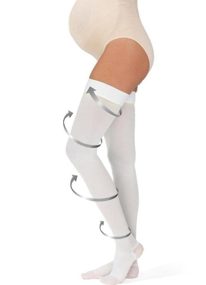 Главная задача родовых компрессионных чулок- предотвращение тромбообразования, риск которого во время родов, в особенности через кесарево сечение, очень высок из-за разрывов сосудов и кровотечений. для достижения этой цели применяется госпитальный (медицинский) антиэмболический компрессионный трикотаж. Благодаря которому, улучшается кровообращение и микроциркуляция в целом. У роженицы не возникают венозные застои или отеки, сопровождающие благоприятные условия для формирования тромбов или развития варикоза, что и помогает решить проблему сосудистых послеродовых осложнений.