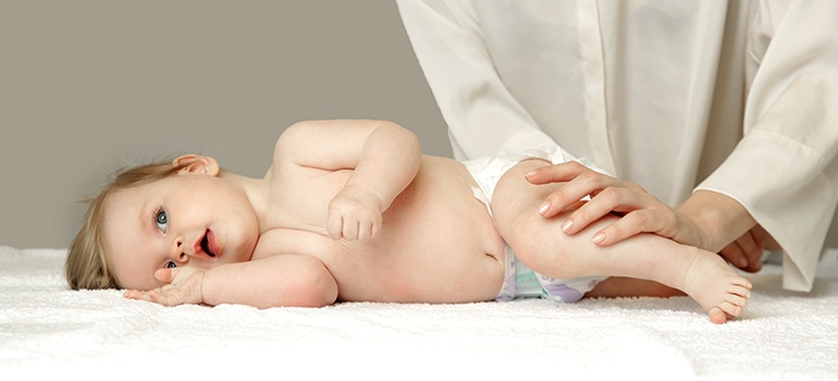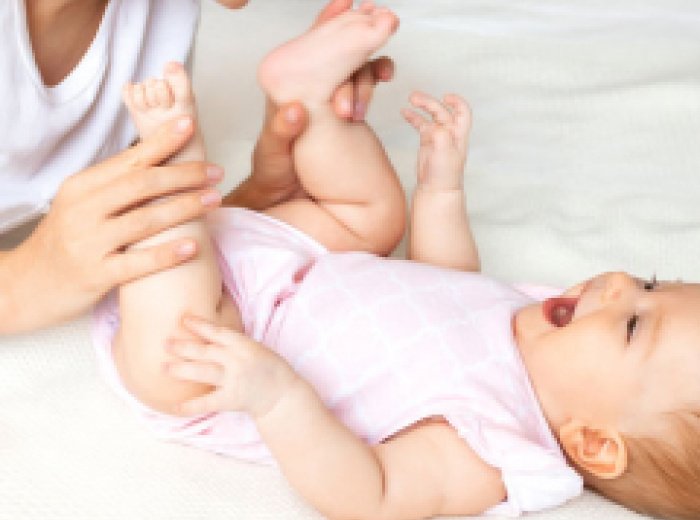 Гимнастику нужно совмещать с воздушными ваннами. Разденьте малыша, снимите с него подгузник. Пусть ничего не стесняет его движения.