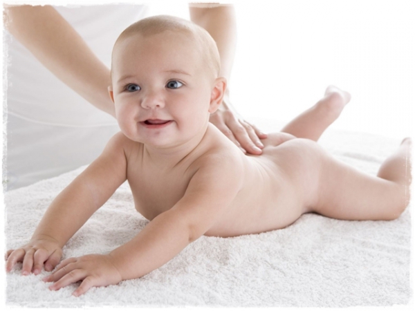 2. Погладьте круговыми движениями по часовой стрелке животик малыша- без усилий, без нажатия.