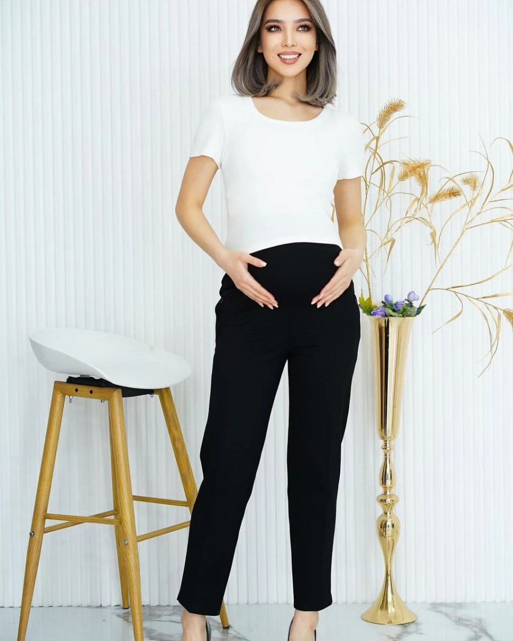Классические офисные брючки для беременных с утеплением флисом. Хорошо подойдут для осени и зимы. Имеют эластичную трикотажную вставку для растущего животика. Объем регулируется эластичной резинкой с прорезями для пуговицы, что позволяет их носить в течении всего срока беременности. Благодаря фиксации выше животика, штаны не слетают, не сползают, комфортны до 9-го месяца. Создают красивый силуэт, не придавая фигуре объема, посадка благодаря выверенным лекалам делает фигуру более стройной. Брюки для беременных подходят и как повседневная одежда и для офиса. Благодаря утеплению, флису, наши будущие мамочки не замерзнут в сезон ветров и дождей. Офисные теплые брюки прямые зауженные к низу сочетаются с любой обувью и разными вариантами верха: классические блузки, рубашки, туники, топы, свободные блузки оверсайз.
