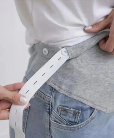 Обхват талии очень удобно регулировать за счет перфорированной резинки, продетой в трикотажном бандаже, которая фиксируется за счет пуговицы.