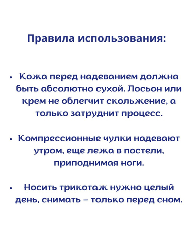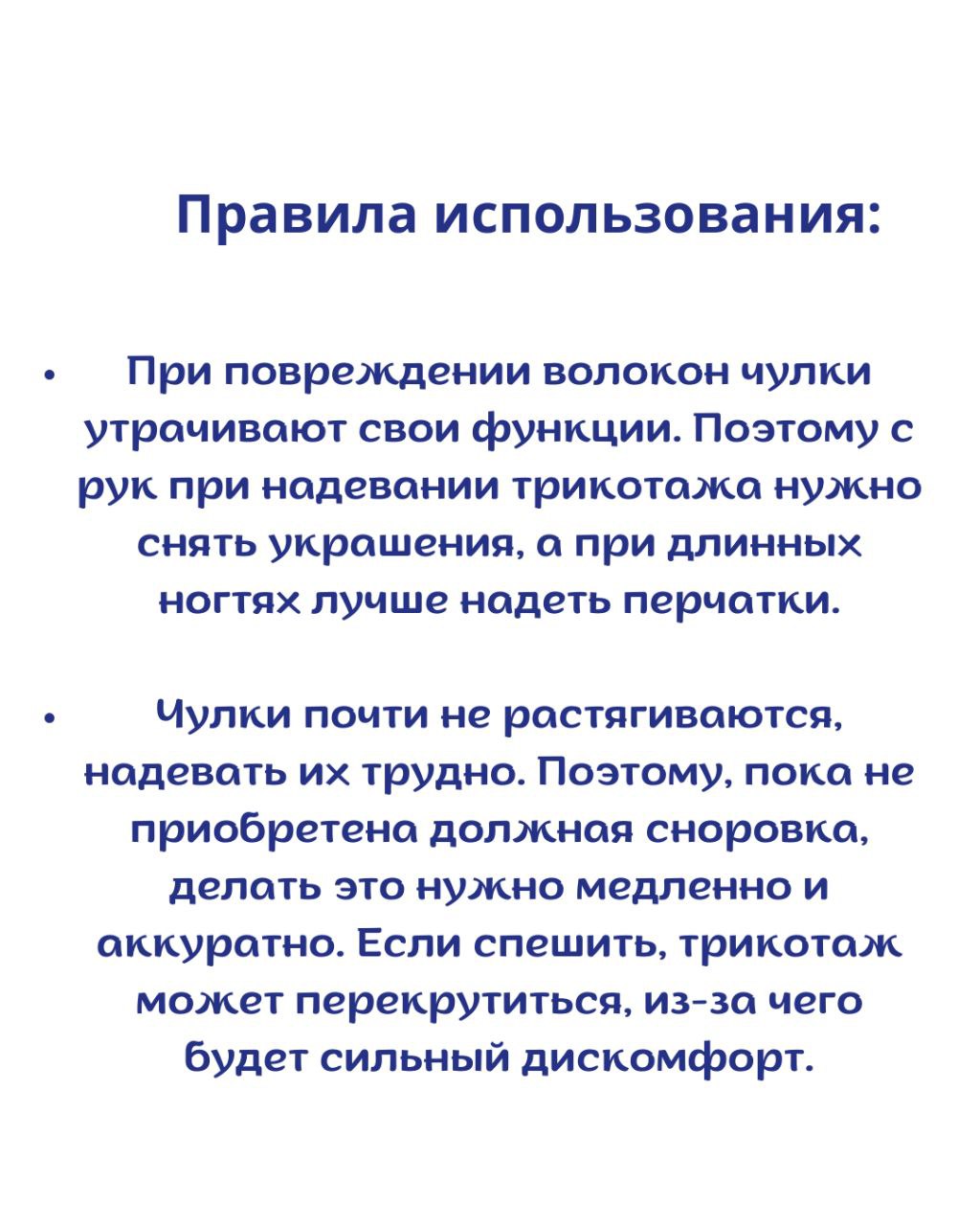 Чулки компрессионные созданы, чтобы обеспечить вас максимальным комфортом в самых важных моментах жизни. Изготовлены из высококачественного трикотажного материала, обеспечивая удобство и комфорт при ношении. Они эластичные и прекрасно облегают ногу, создавая ощущение легкости и свободы движений. Одетые в них, вы будете чувствовать себя уверенно и прекрасно выглядеть. Некоторые моменты в жизни каждого человека требуют особой поддержки и заботы. В такие моменты на помощь приходят чудесные "чулки компрессионного класса 1". Эти уникальные чулки предназначены для женщин, которые ожидают радостного прибавления к семье и для тех, кто готовится пройти медицинскую операцию. Компрессионные чулки 1 класса с их уникальными свойствами обеспечивают рациональную опору и поддержку, которые необходимы в такие трудные и нелегкие времена. Чулки созданы из высококачественного материала, который обеспечивает необходимое давление и эффективность восстановления. Они обладают плотной эластичной текстурой, которая плавно прилегает к ноге, создавая комфорт даже в самые трудные моменты. Сетчатая чулков позволяет коже дышать, обеспечивая максимальный комфорт и поддержку для ног. Компрессионные чулки класса 1 позволяют поддерживать здоровье вен, предотвращая возникновение варикоза и тромбоза.