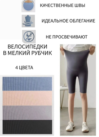Велосипедки женские для беременных в рубчик - универсальная повседневная и незаменимая вещь в гардеробе будущей мамы. Можно использоваться как спортивные, как домашняя одежда для женщин или для прогулок. Идеально использовать, как женская одежда для фитнеса, спортивная форма, одежда для йоги, танцев, пилатеса, гимнастики для будущих мам. Велосипедки для беременных с высокой посадкой регулируются перфорированной резинкой с пуговичкой объема на животик. Сшиты из прочного хорошо тянущегося материала, поэтому идеально подойдут на любой срок беременности, в роддом и даже после родов. Мягкий пояс не давит на талию и поддерживает живот (как бандаж), даже на последних неделях беременности. Велосипедки не натирают, не раздражают кожу, комфортные и удобные. Данная модель позволит вам всегда выглядеть стильно, при этом вашему телу будет очень комфортно в них, что сейчас для вас очень важно. Велосипедки для беременных - стильные и удобные, подходят для любых видов активности и легко сочетаются с различными элементами одежды. Высокая талия и премиальная ткань обеспечивают полную свободу движений и комфорт при носке. Велосипедки в рубчик - это не только модный аксессуар, но и универсальная одежда, легко стираются и сохраняют свой первоначальный вид при бережном использовании.