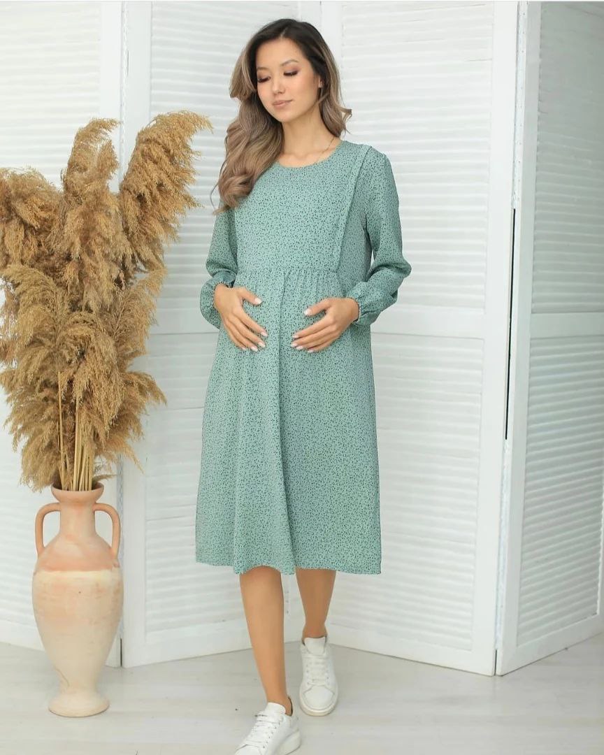 Платье для беременных и кормящих с длинным рукавом - незаменимая вещь в гардеробе любой будущей мамы. Шелковистая модель разработана с учетом особенностей беременных и кормящих женщин. Платье комфортно и нарядно на всех сроках беременности, а также после беременности прекрасно корректирует фигуру и позволяет легко кормить малыша,благодаря незаметным молниям.Премиальный материал Прадо – дышащий. У каждой расцветки платья свой стильный принт. Платье подойдет для прогулок в парке, в офис на работу, на праздник, на свидание, на учебу, на встречу с друзьями. Ее можно взять в роддом или носить после родов.