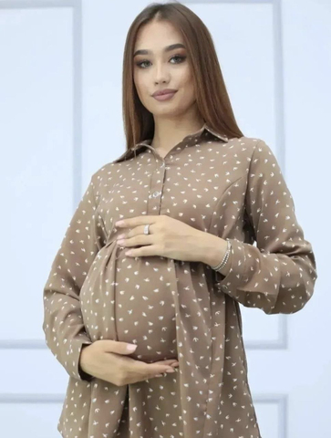 Стильная рубашка для беременных и кормящих с длинным рукавом - незаменимая вещь в гардеробе любой будущей мамы. Шелковистая модель с завышенной талией разработана с учетом особенностей беременных и кормящих женщин. Рубашка удлиненная комфортна и удобна на всех сроках беременности, а также после беременности прекрасно корректирует фигуру и позволяет легко кормить малыша. Премиальный материал Прадо – дышащий, У каждой расцветки рубашки свой стильный принт. Нарядная рубашка, подойдет для прогулок в парке, в офис на работу, на праздник, на свидание, на учебу, на встречу с друзьями. Ее можно взять в роддом или носить после родов.
