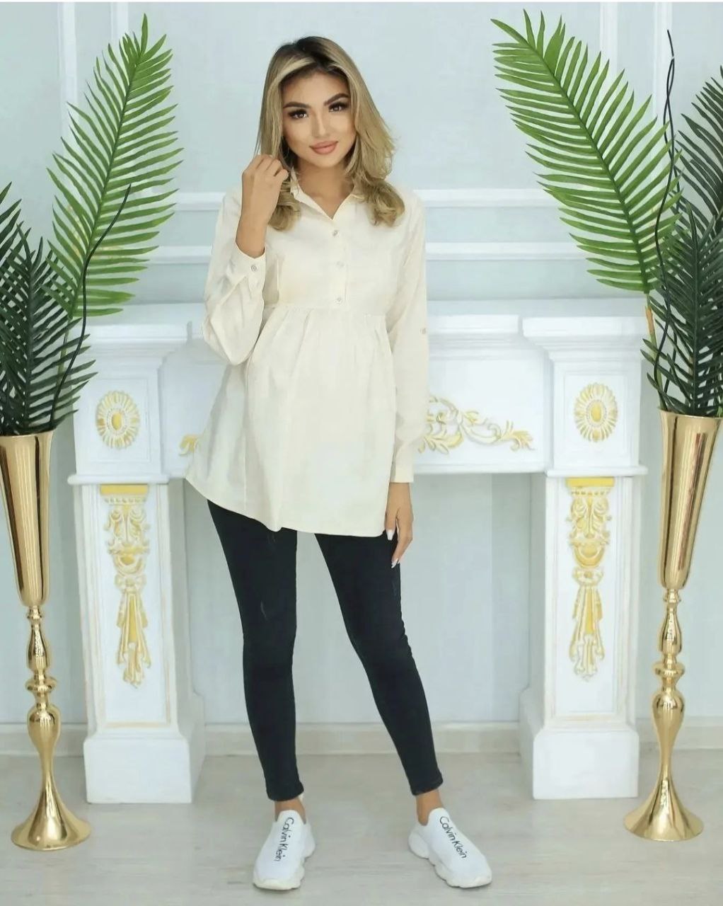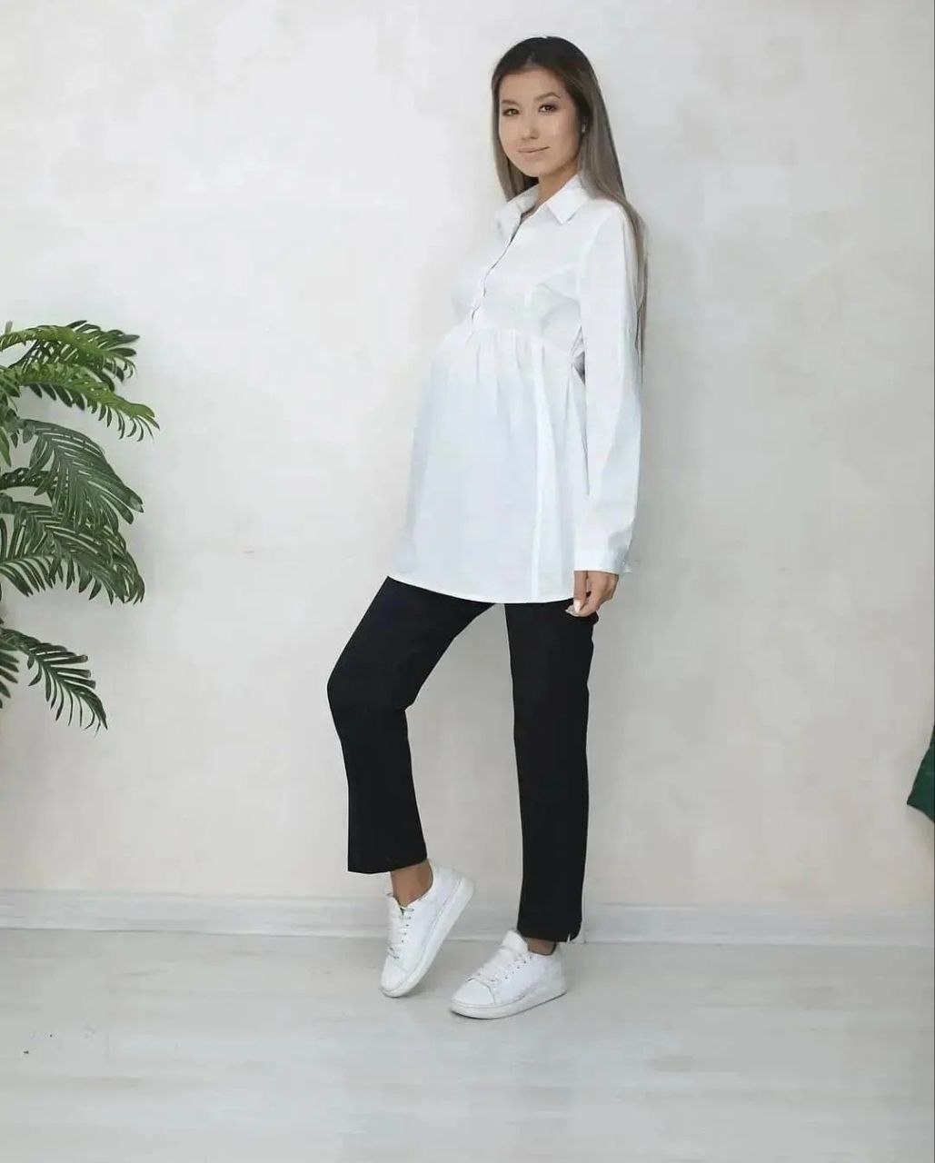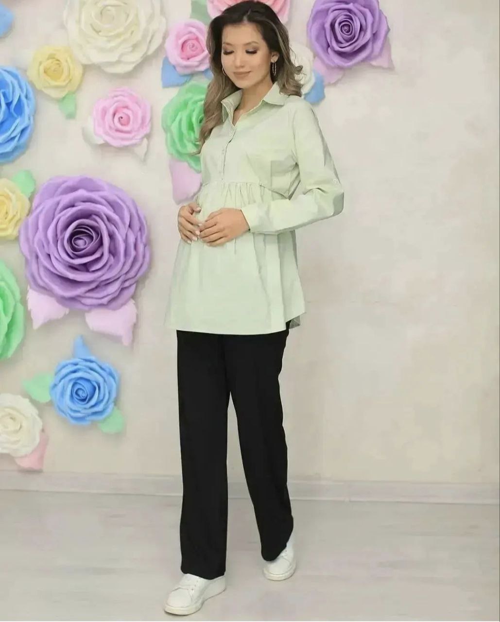 Базовая рубашка для беременных и кормящих - незаменимая вещь в гардеробе любой будущей мамы. Модель с завышенной талией разработана с учетом особенностей беременных и кормящих женщин. Рубашка удлиненная комфортна и удобна на всех сроках беременности, а также после беременности прекрасно корректирует фигуру и позволяет легко кормить малыша. Дышащий материал позволяет носить рубашку в любое время года. Рубашку можно комбинировать с любым сочетанием одежды, подойдет для прогулок в парке, в офис на работу, на праздник, на свидание, на учебу, на встречу с друзьями. Ее можно взять в роддом или носить после родов.