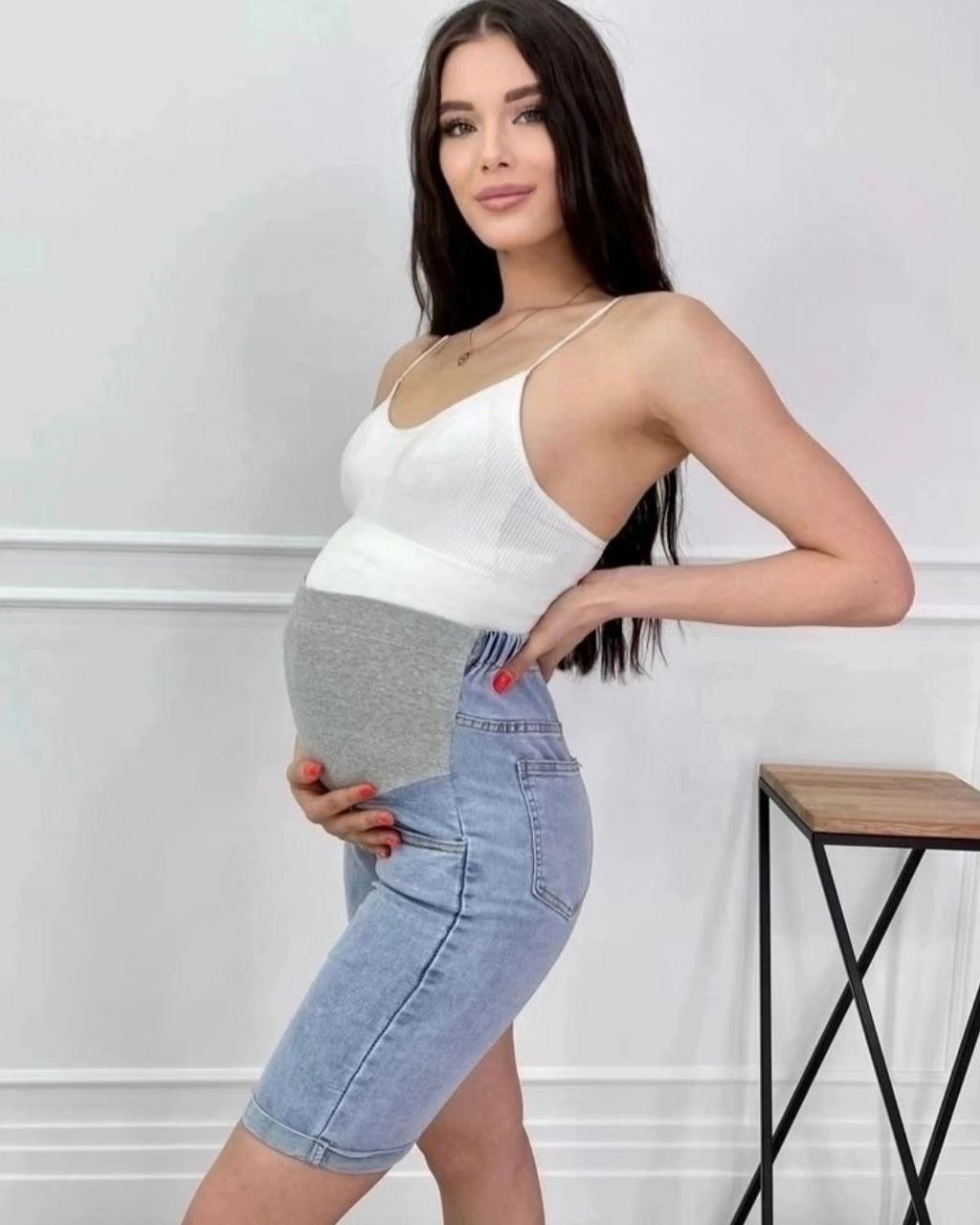 Стильные и удобные джинсовые шорты для беременных - это сочетание стиля и премиум качества. Шорты с джинсовой спинкой летние на ощупь плотные и приятные. Высокий бандаж с животиком выполнен из эластичного трикотажа, обладает прекрасным поддерживающим эффектом и удобен на любом сроке беременности. Джинсовые шорты имеют мягкие вставки с регулировкой в виде резинки с пуговицей. Комфортные и стильные с высокой посадкой не стесняют движений, отлично сочетаются со многими моделями одежды. РЕКОМЕНДАЦИИ ПО УХОДУ за одеждой для беременных: использовать бережный режим для стирки. ОБРАТИТЕ ВНИМАНИЕ! При выборе размера шорт для будущих мам ориентируйтесь: по размеру обхвата бедер, так как обхват талии во время беременности.
