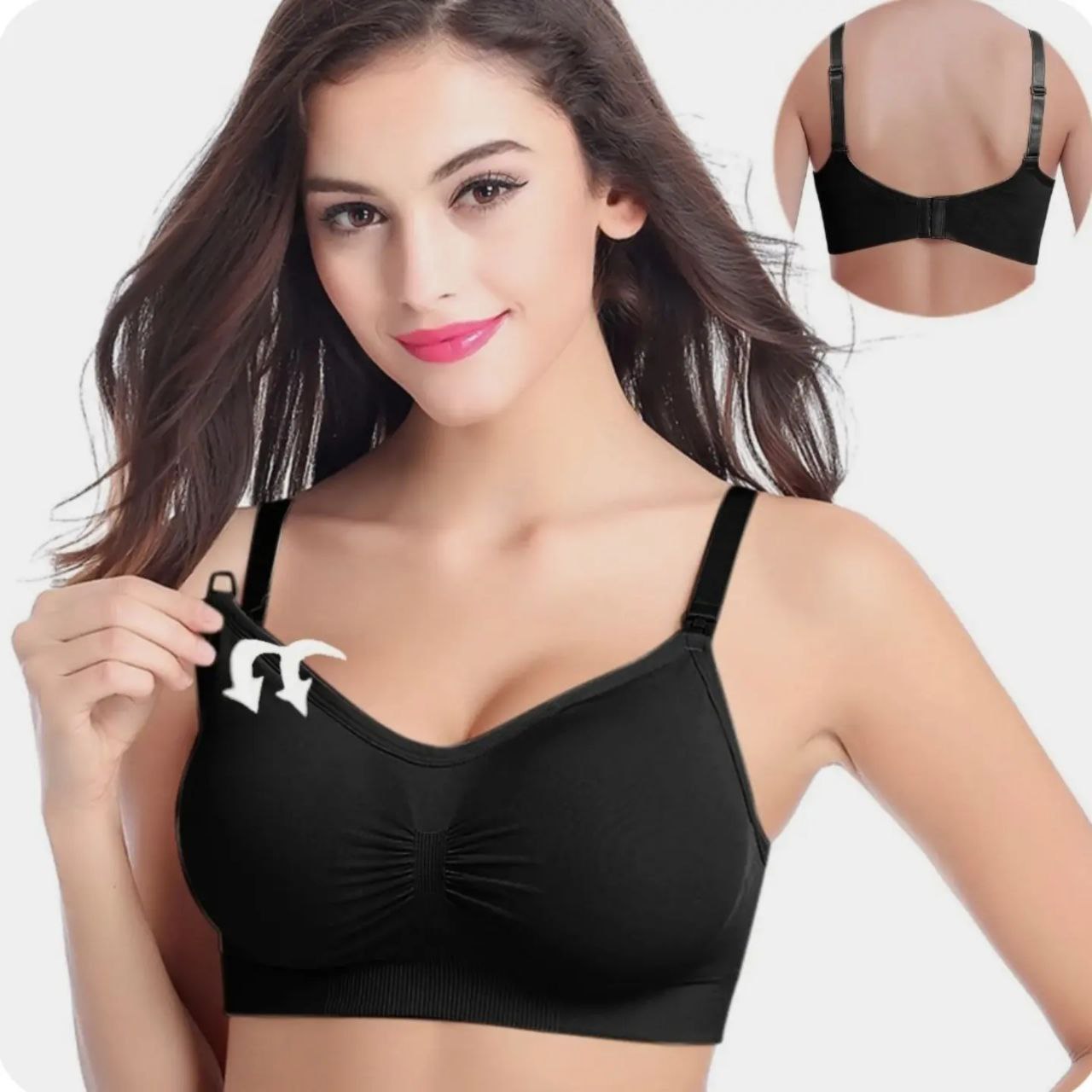 Бюстгальтер для кормления является незаменимым вариантом нижнего белья для беременных и кормящих грудью женщин. За счет своего дизайна лифчик можно использовать как топ. Бесшовный бюстгальтер без косточек приятен к телу, комфортен в ношении. Вы всегда сможете отрегулировать бретели, а также степень утяжки с помощью застежки. Лиф выполнен из качественного нейлона с добавлением спандекса, данный материал поддерживает грудь в тонусе и красиво подчеркивает бюст, у топика также заметен эффект пуш-ап. За счет утягивающих резинок грудь находится в анатомически правильном положении. Одежда для беременных должна быть прежде всего, удобной. Лифчик топ облегчает процесс кормления ребенка, внешняя часть бюстгальтера удобно отстегивается. Кормление грудью станет для Вас комфортным. Топ на бретелях востребован при выписке из роддома, как дородовое и послеродовое белье. Топ бра можно использовать для занятия спортом, как спортивный топ для фитнеса, надевать под пиджак. Нижнее женское белье больших размеров всегда востребовано, поэтому у данного топа для кормления имеется 5 размеров.